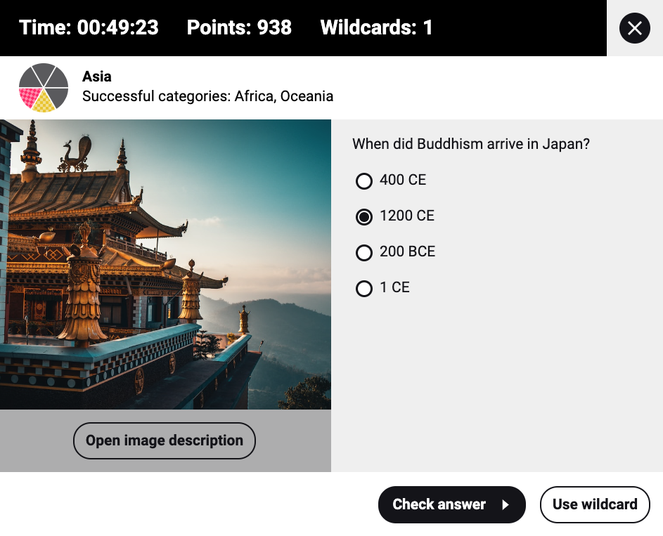 To help the player sort the question, you can also choose a question image. We recommend using an image whenever possible. This way, the player will be able to answer the questions quicker.