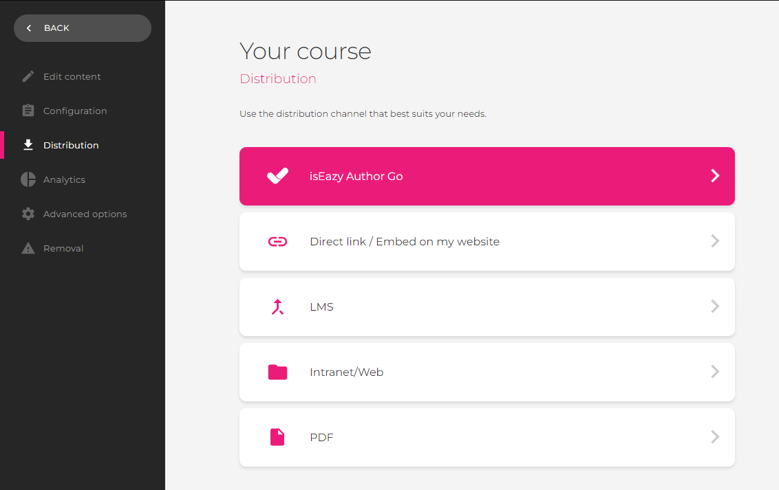 On the menu on your left, click on Distribution and you will see isEazy Author Go as the top option: