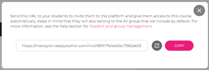 You may also generate an invitation link to access the course, which will be valid for 48 hours, with a link button: