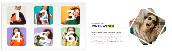 - Fill screen: In this mode, the image occupies all the available space. Because the size of your image does not have to coincide with the size of the cell, we have designed a simple method to help you choose the optimal fitting point for your photo. The following shows how the same image can adapt to different cells, establishing a simple point with one click (we suggest a framing point that you can change later). When you change the layout or move the element to another cell, you will see how to maintain the framing of your image. To adjust it to your liking, you can choose the background color below the image, it will be seen in transparent images or when you apply blending modes.