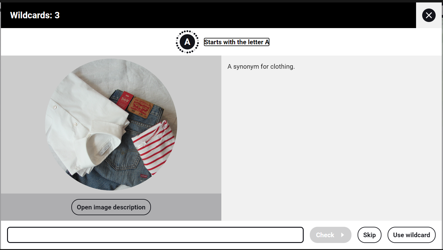 It is an interactive element that consists of discovering a series of words or concepts through the letters of the alphabet. Because it is a game-like element, users will be able to play as many games as they want so they can improve their scores.