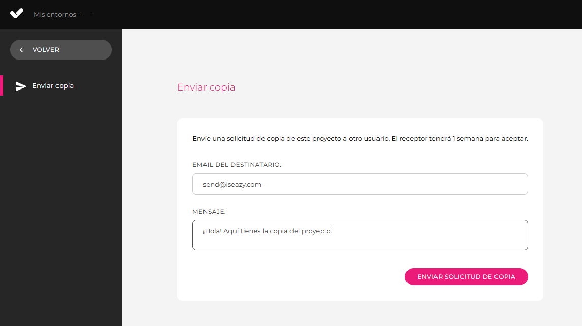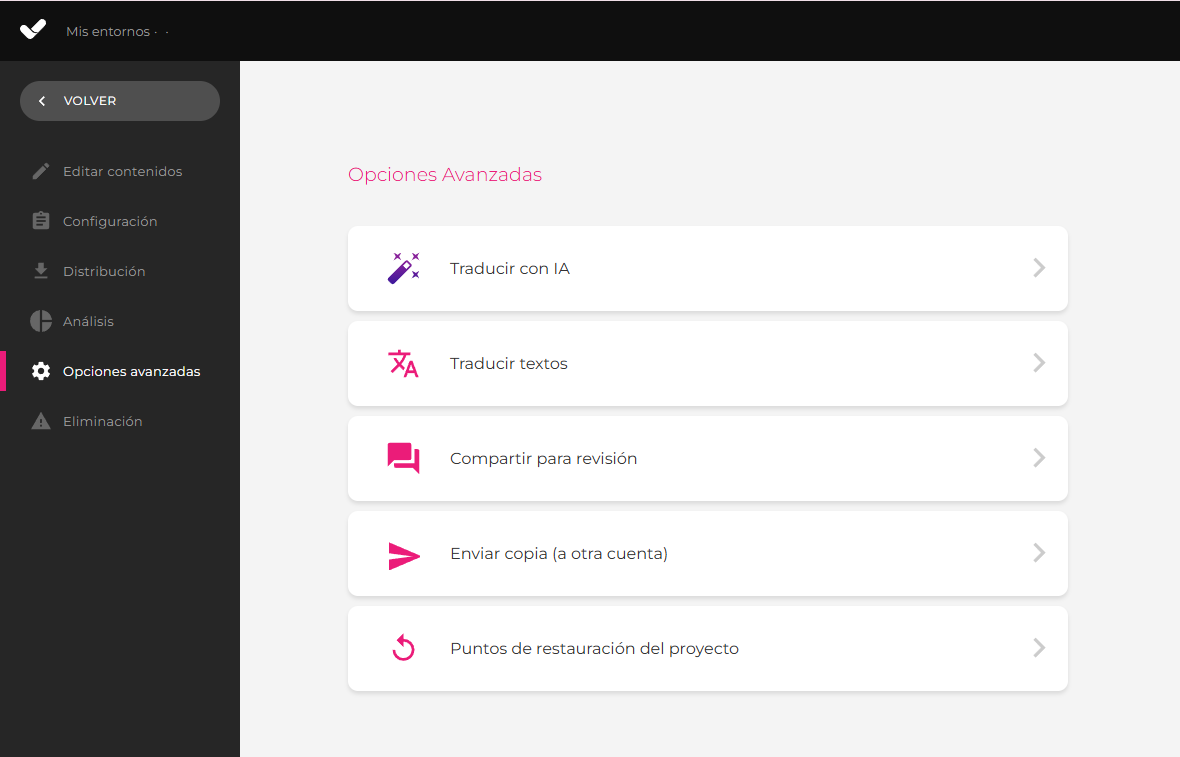 Si deseas compartir tu proyecto para revisión, accede en el menú lateral de tu proyecto a Opciones avanzadas.