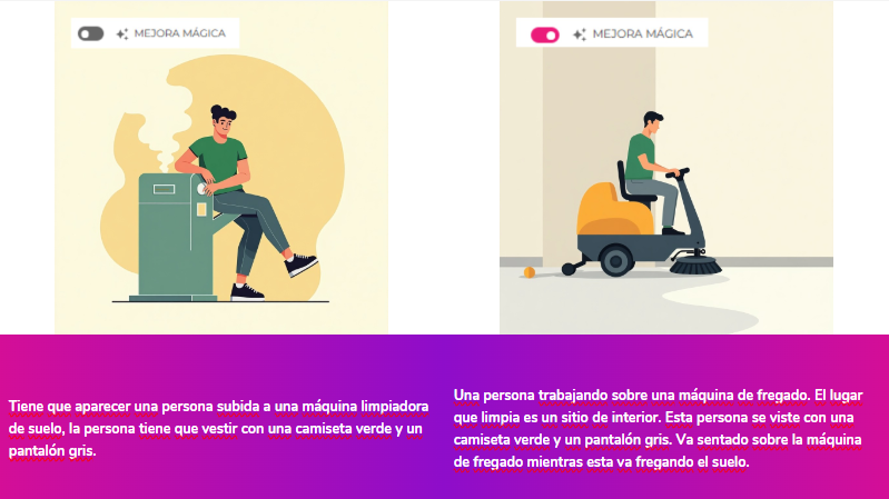 Mira cómo esta funcionalidad transforma tu texto (prompt) en una imagen generada con IA mucho más precisa y visual: