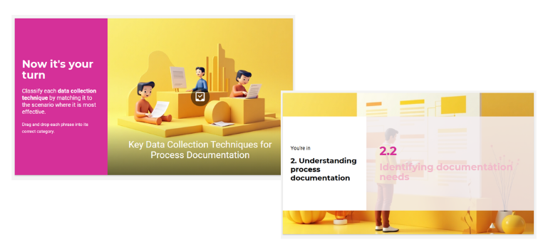 Elige el estilo de imágenes, colores y plantilla y el curso se ajustará a tu branding. Tendrás control total ya que puedes editar, añadir o reorganizar contenidos para adaptarlo por completo a tus necesidades. El resultado final será 100% accesible y totalmente preparado para publicar en tu LMS.
