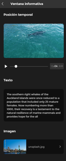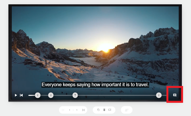 Adicione uma transcrição quando for necessário. Tenha em mente que, no vídeo interativo, as transcrições são feitas por trechos. Em cada um dos “passos” que você definir no vídeo interativo, haverá um campo para definir a transcrição; essa transcrição corresponderá ao conteúdo desde o passo anterior até o passo em que você estiver definindo.