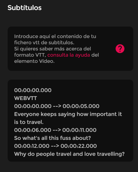Subtítulos no formato VTT