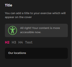 - Também é possível adicionar um título com nível de cabeçalho, para que os estudantes identifiquem o exercício. Evite repetir o título dentro da mesma seção do projeto.