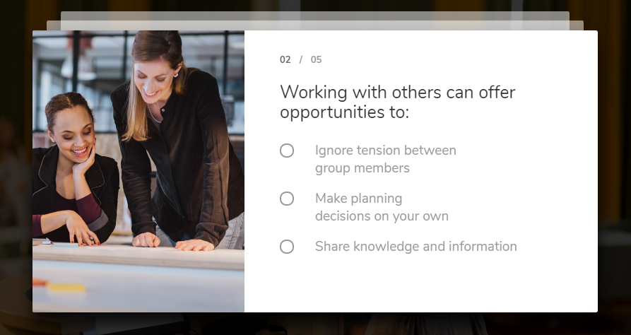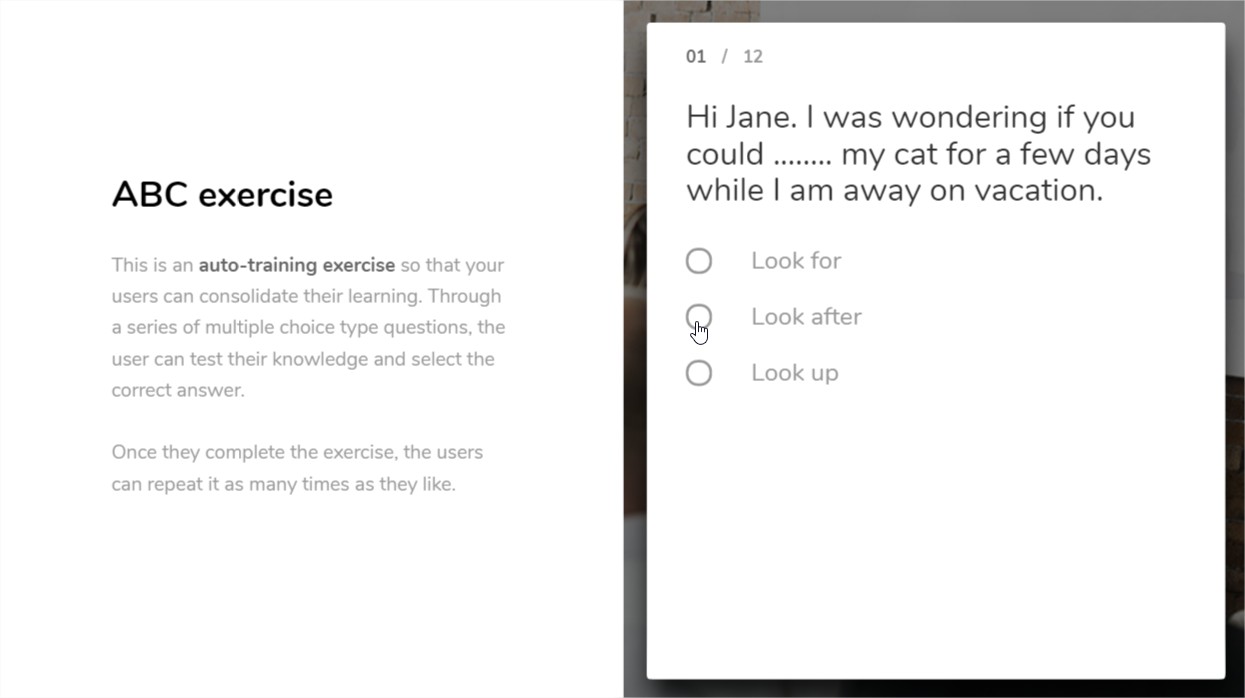 Trata-se de um exercício autoformativo para que seus usuários consolidem seu aprendizado. Por meio de uma série de perguntas do tipo teste, o usuário pode ir testando seus conhecimentos e selecionar as respostas corretas. Uma vez finalizado o exercício, o usuário poderá repeti-lo quantas vezes desejar.