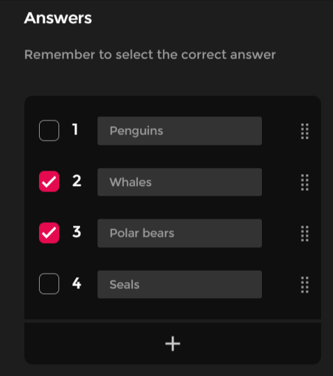 - Modo de resposta MULTI: mais de uma resposta pode ser configurada como correta.