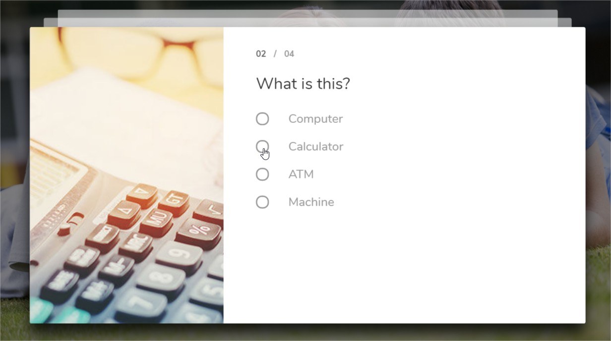 É possível adicionar uma imagem para ilustrar ou complementar a questão. Ela possui as mesmas opções de personalização que o elemento Imagem.
