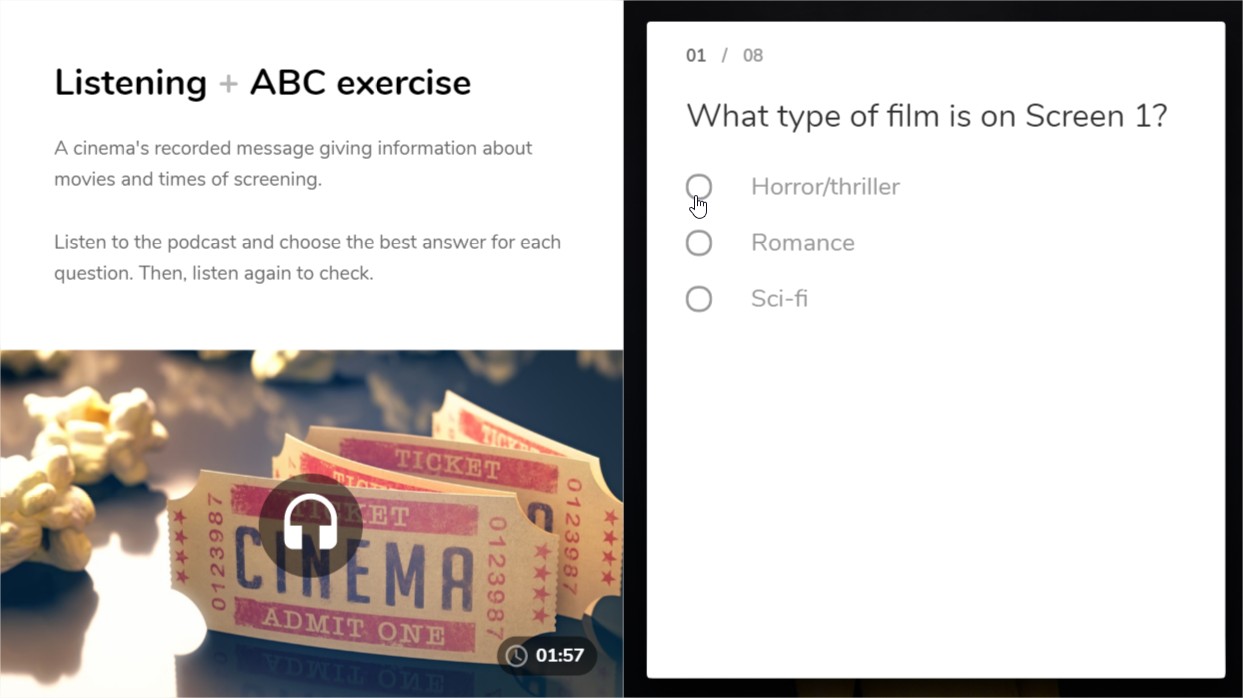 - Criação de exercício de Listening + ABC: