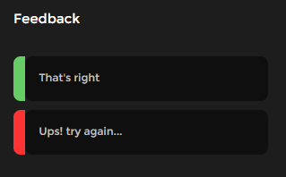 Lembre-se de que não é necessário configurar feedback de acerto e erro para todas as perguntas. Ele só será exibido quando estiver configurado.