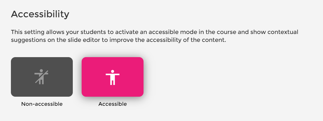Lembre-se de que os cursos sempre serão publicados em modo dual: será o usuário quem decidirá se deseja visualizá-los na versão Acessível.
