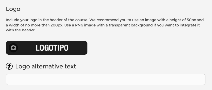 Se você adicionar o logotipo da sua organização, também terá a possibilidade de incluir uma descrição no ALT Text.