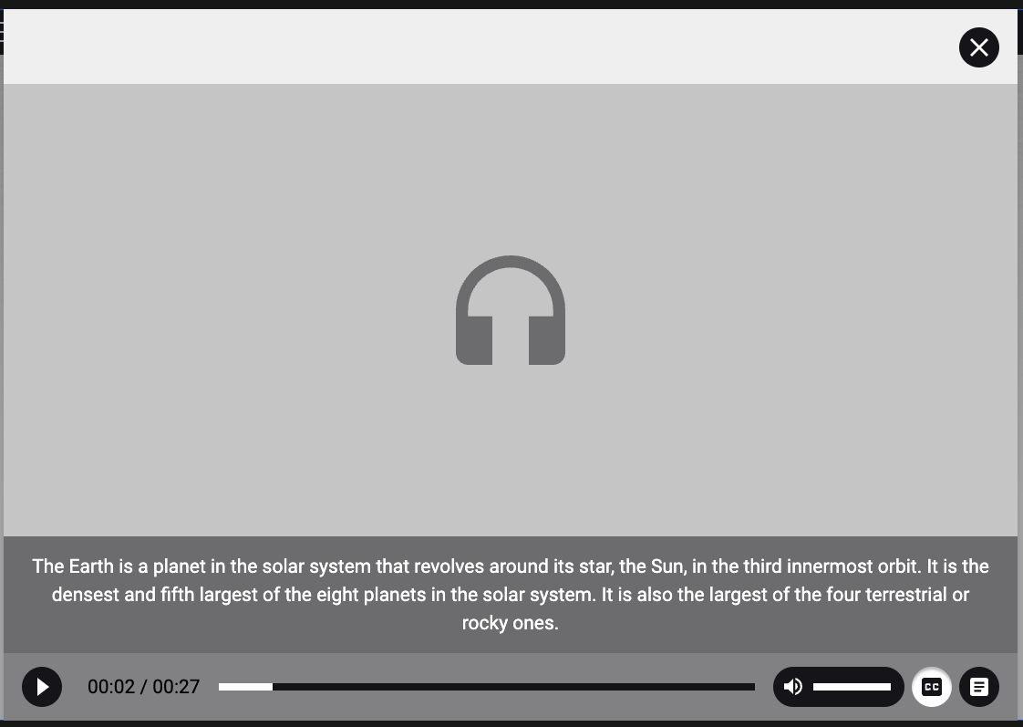 - Quando aplicável, adicione uma transcrição do conteúdo do áudio. Esse texto deve ser descritivo, e pode ser enriquecido com formatação e legendas explicativas (captions).