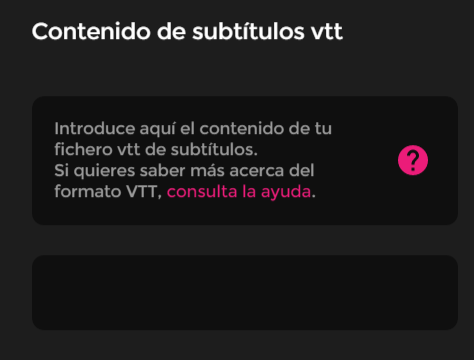 Se desejar incluir legendas no áudio, copie o conteúdo do seu arquivo VTT para o campo de texto correspondente no editor de áudio.
