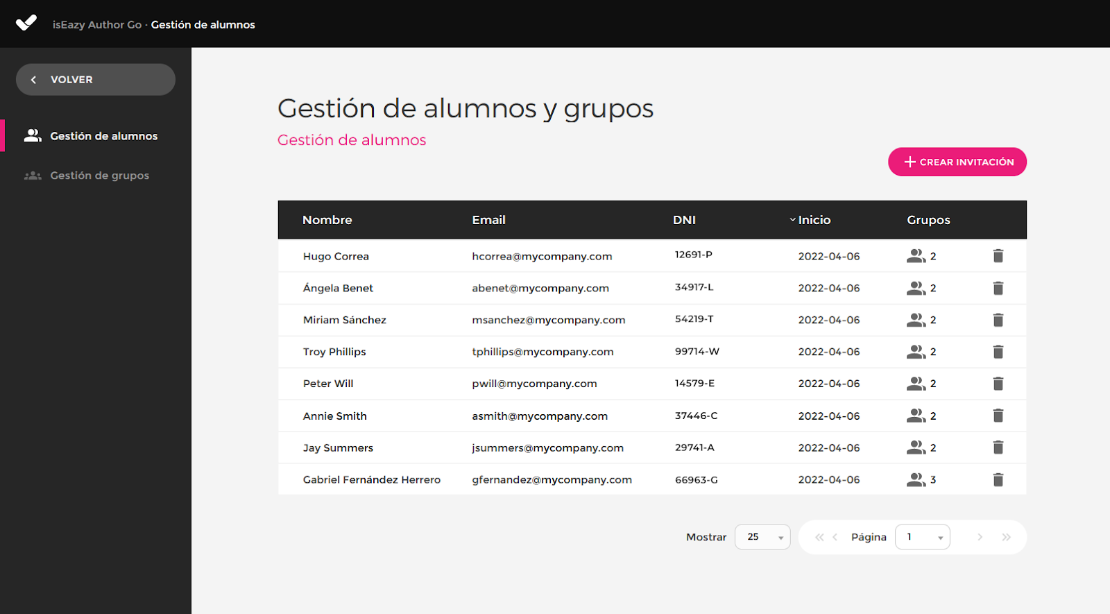 Você encontra a seção Gestão de alunos e grupos dentro do isEazy Author Go, no menu principal à esquerda, em Meu Perfil.