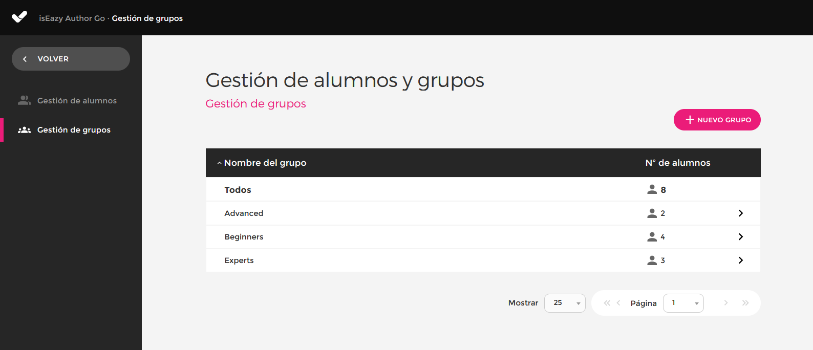 Com o grupo Todos, é possível convocar todos os alunos registrados no isEazy Author Go para um novo curso de uma só vez, independentemente dos demais grupos aos quais pertençam. Isso pode ser muito útil na hora de lançar formações para todo o seu público.