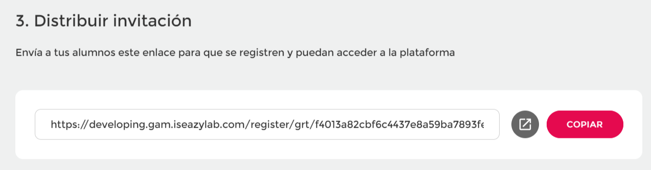 Para convidar participantes à sua plataforma, basta selecionar a quais grupos eles devem pertencer e, em seguida, gerar o link de convite. Lembre-se de que todos os alunos pertencerão por padrão ao grupo Todos.