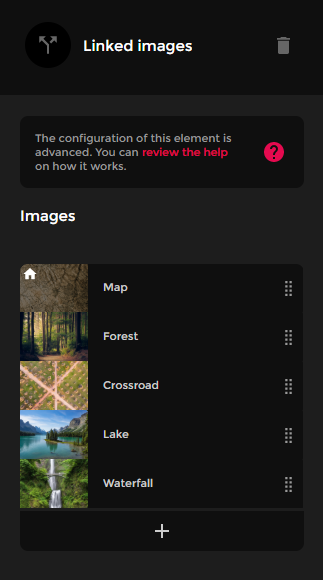 Este é um elemento interativo altamente versátil. Para configurá-lo, é necessário criar uma sequência de telas (ou cenas), onde você pode adicionar uma imagem de fundo, camadas de imagens, um ou mais textos opcionais e elementos de navegação que permitem acessar outras cenas com navegação própria. Isso possibilita criar a navegação de conteúdo conforme desejar, simulando uma grande variedade de situações e exercícios.