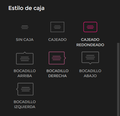 Estilo da caixa: selecione o tipo de caixa para o texto entre as opções disponíveis.