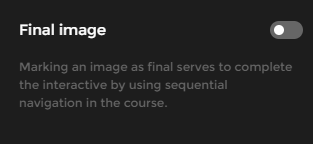 Marcar uma cena como “final” serve para dar o interativo como concluído, ao usar navegação sequencial no curso, sempre e quando todos os elementos do tipo link que você incluir sejam para cenas internas do próprio interativo. Isso é muito útil quando você deseja simular um exercício: permitirá indicar o momento em que o aluno chegou a uma cena considerada como o final do exercício.