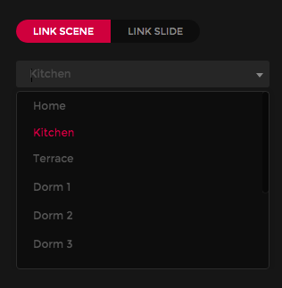 Seletor com os nomes das cenas criadas na lista inicial do elemento.