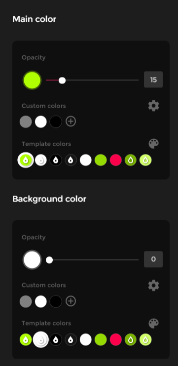 É possível configurar a cor principal do gráfico e a cor de fundo.