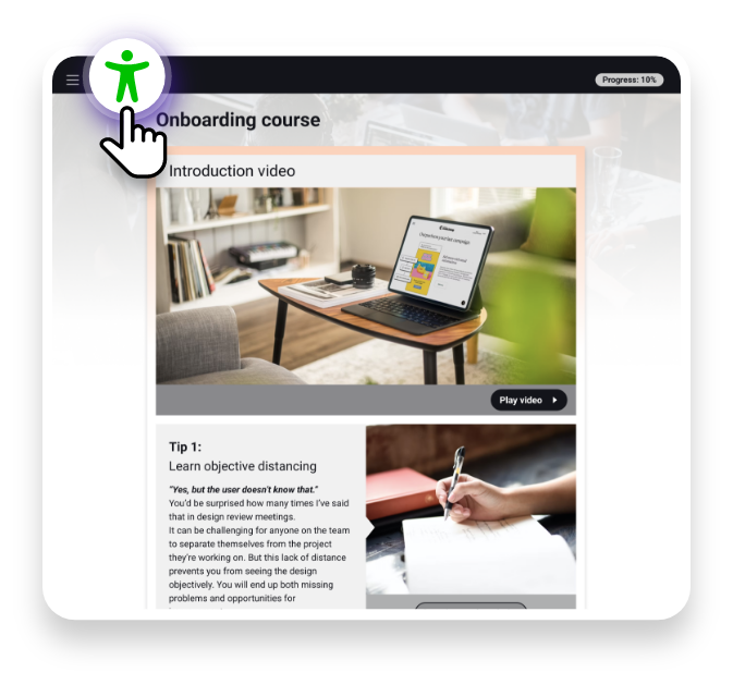 Com o isEazy Author, você pode criar cursos acessíveis do zero ou transformar os que já tem na sua conta. Nesta seção vamos apresentar as principais informações sobre a acessibilidade no contexto do e-learning e como configurá-la, para que você possa utilizá-la de forma eficiente.