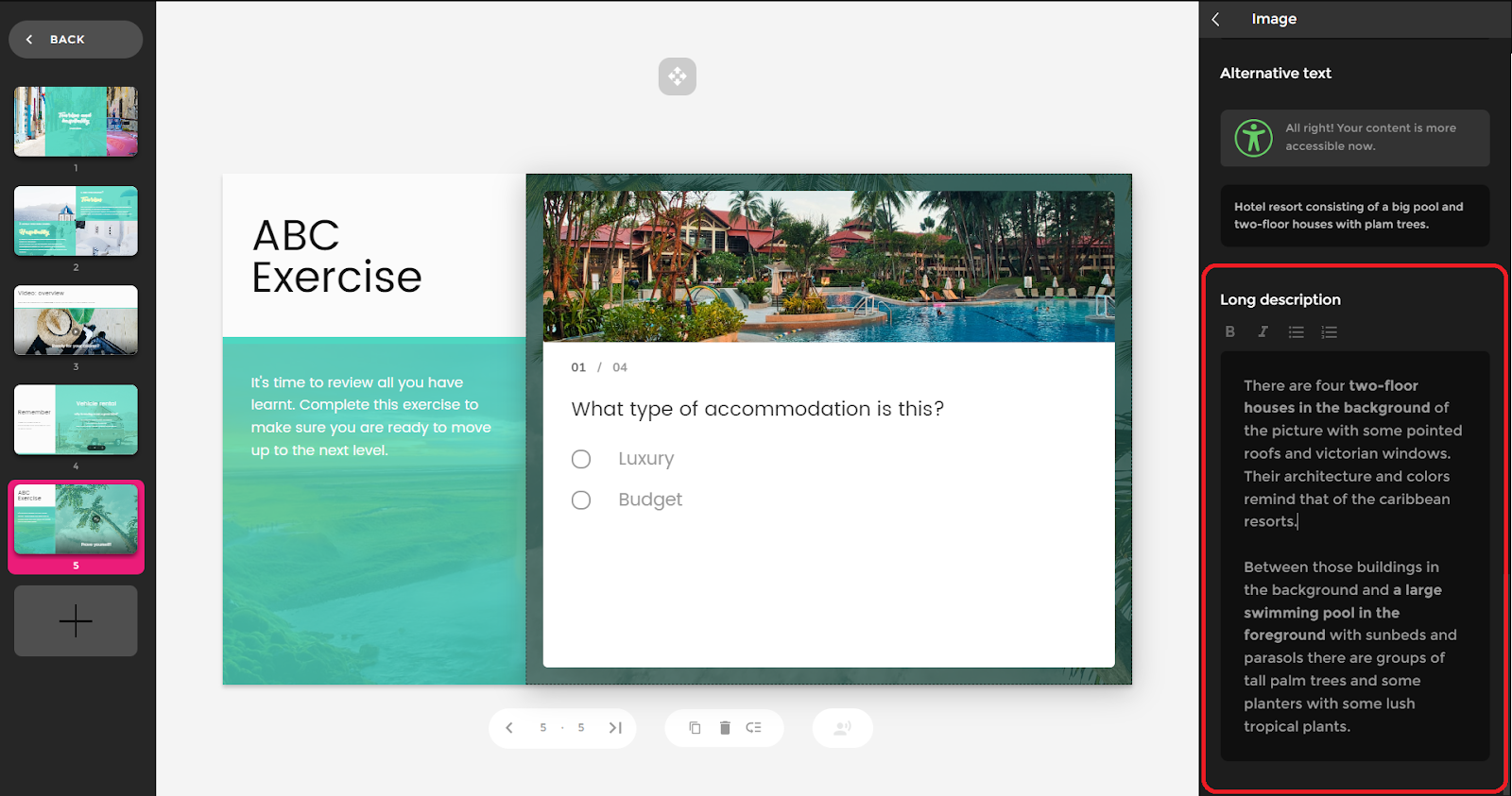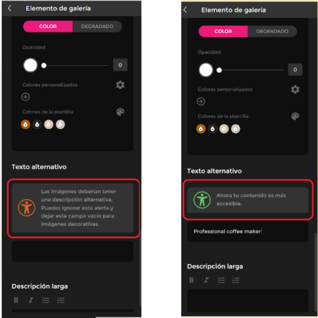 Se você adicionar o texto, em vez disso verá a seguinte mensagem: “Agora seu conteúdo é mais acessível.”