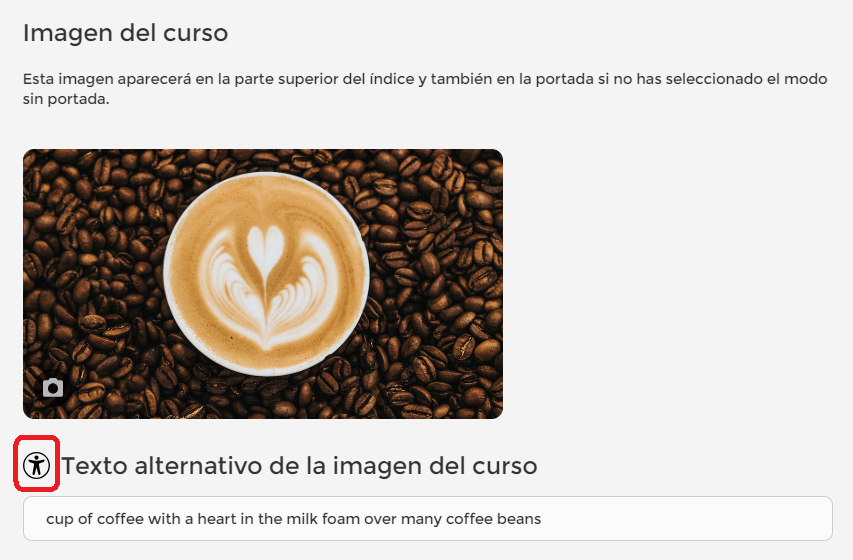 Avalie se as imagens que você insere em cada ponto são informativas e, portanto, exigem um texto alternativo, ou se são meramente decorativas e, nesse caso, não é necessário adicioná-lo. Esse campo não é obrigatório e pode ser deixado em branco se a imagem não trouxer informação relevante. Em cada situação, o sistema lembrará da possibilidade de incluir o texto alternativo.