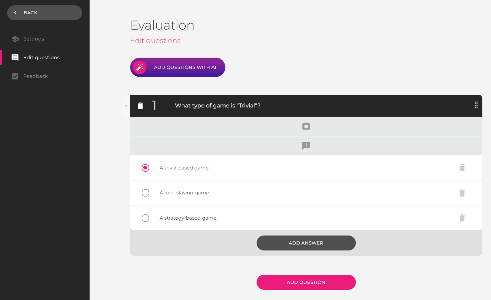 Uma vez geradas, as perguntas poderão ser editadas e também será possível excluir aquelas que você não quiser manter.