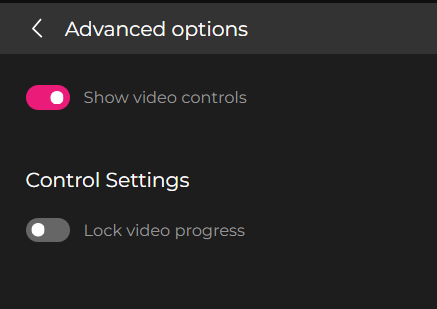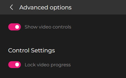 Por padrão, a opção “Mostrar controles do vídeo” vem ativada e a opção “Bloquear avanço”, desativada.