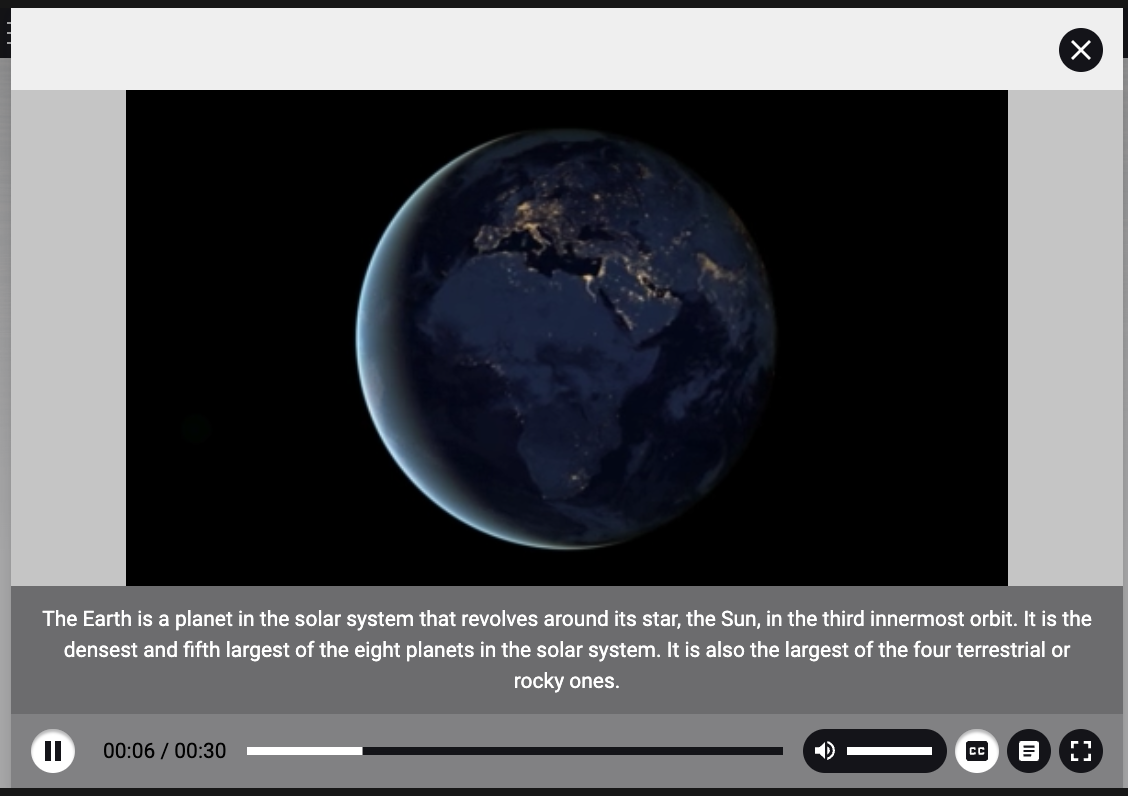 Adicione um texto alternativo (alt text) e, se necessário, uma descrição longa para a imagem de capa do vídeo.