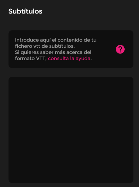 Se desejar incluir legendas no vídeo, copie o conteúdo do seu arquivo VTT diretamente no campo de texto correspondente no editor de vídeo.