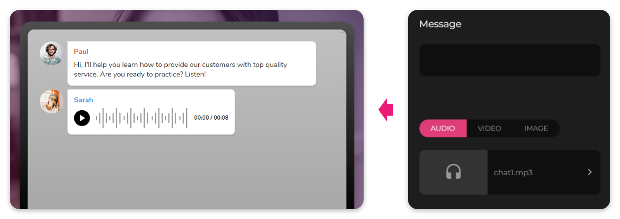 - Mensagem: é possível inserir apenas texto ou também adicionar áudio, imagens ou vídeo.