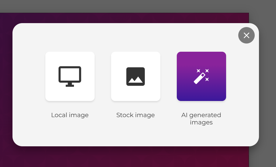 Sempre que quiser adicionar uma imagem em um elemento do isEazy Author, você poderá escolher entre carregar seu próprio arquivo, selecionar uma imagem do catálogo ou gerar uma nova imagem com Inteligência Artificial.