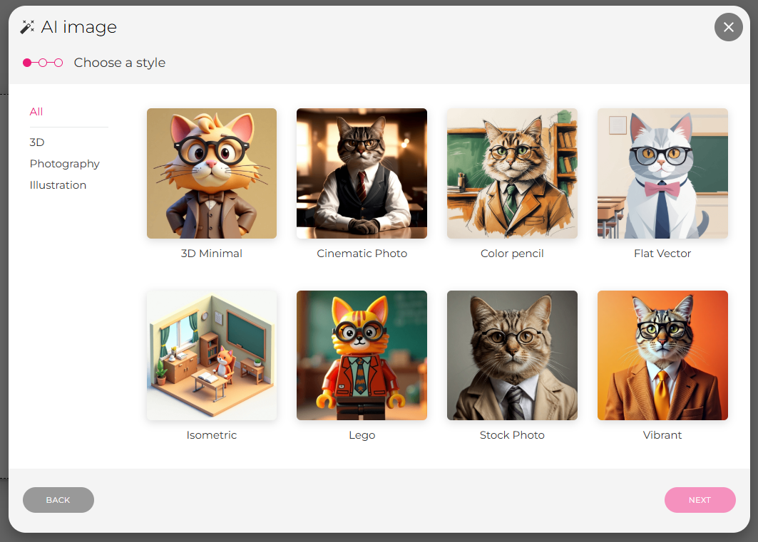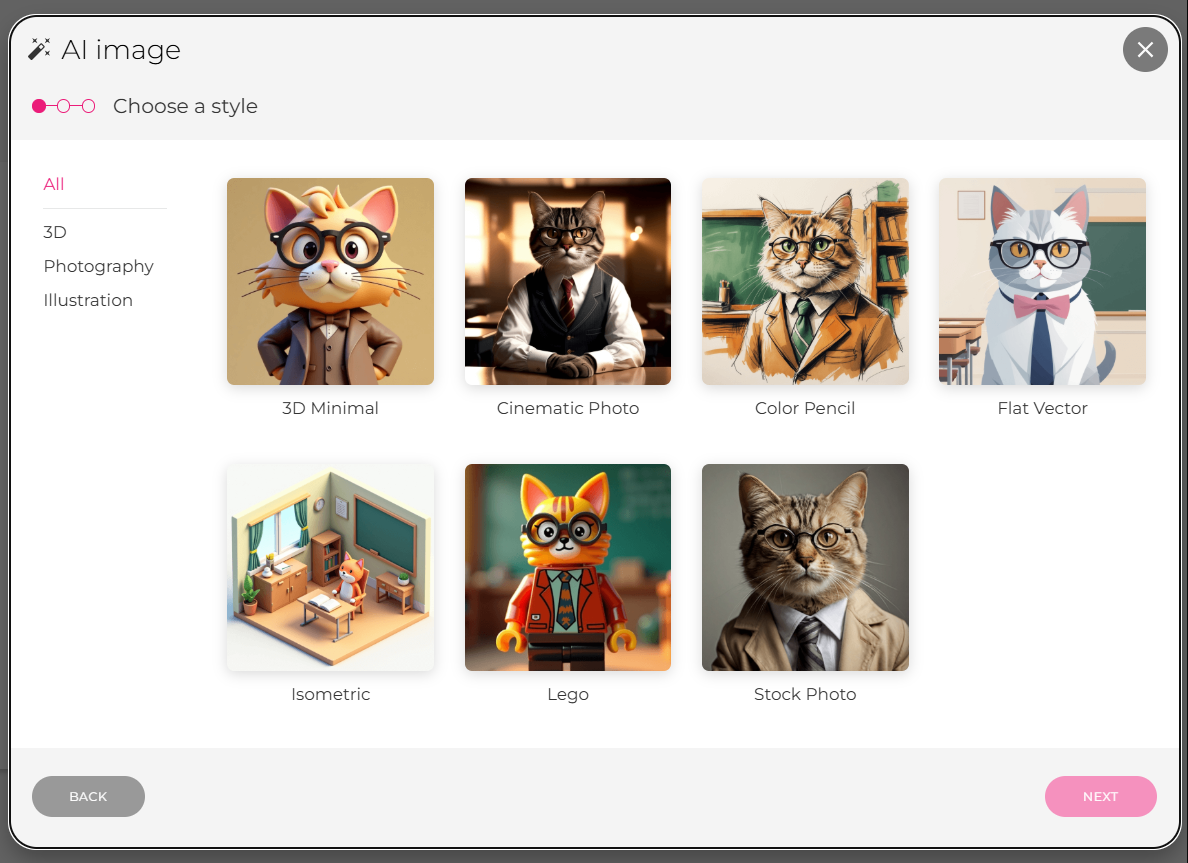 Em seguida, escolha um estilo e uma opção dentro desse estilo.
