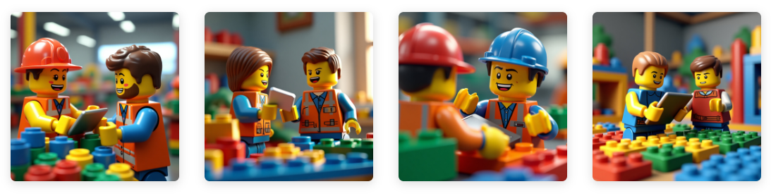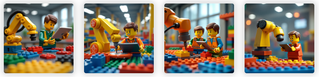 Exemplo em inglês: “A robotic arm assembling parts on a production line while an engineer supervises adjustments on a tablet.”