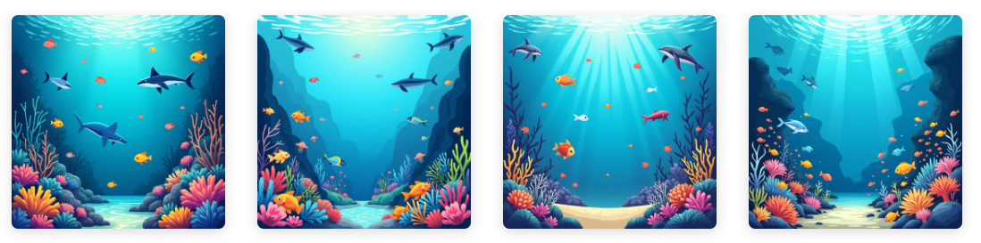 Exemplo: “An underwater scene full of vibrant marine life, with colorful fish, coral reefs and sea creatures such as turtles, jellyfish and dolphins. The deep blue ocean is illuminated by sunlight filtering through the water. Do not add sharks” (Uma cena submarina cheia de vibrante vida marinha, com peixes coloridos, recifes de coral e criaturas marinhas como tartarugas, águas-vivas e golfinhos. O profundo oceano azul está iluminado pela luz do sol que se filtra através da água. Não adicione tubarões.)